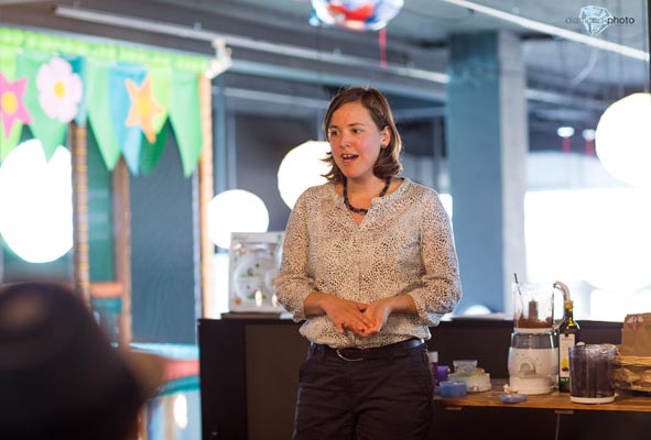 Nebst den Beratungen halte ich Präsentationen zum Beispiel wie auf dem Foto über gesunde Säuglingsernährung zusammen mit der Vorstellung eines neuen Babyfood-Gerätes.